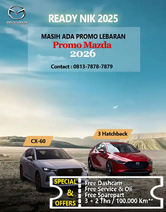 Daftar Produk Mazda terbaru 2026 bisa anda dapatkan informasinya disini, website official Mazda Jakarta – Bogor. Dapatkan informasi harga dan Spesifikasi New Mazda CX-60 dengan menghubungi Sales rekomendasi kami.